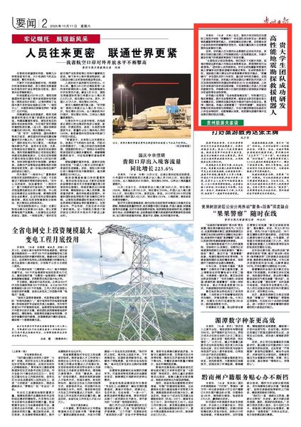貴州日報:貴大學生團隊成功研發(fā)高性能地震勘探救援機器人