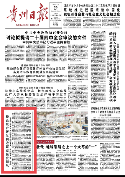 貴州日報:校企聯(lián)合研發(fā)制造超高強度鋼絲每平方毫米可承受零點二噸重量,撐起世界第一高橋